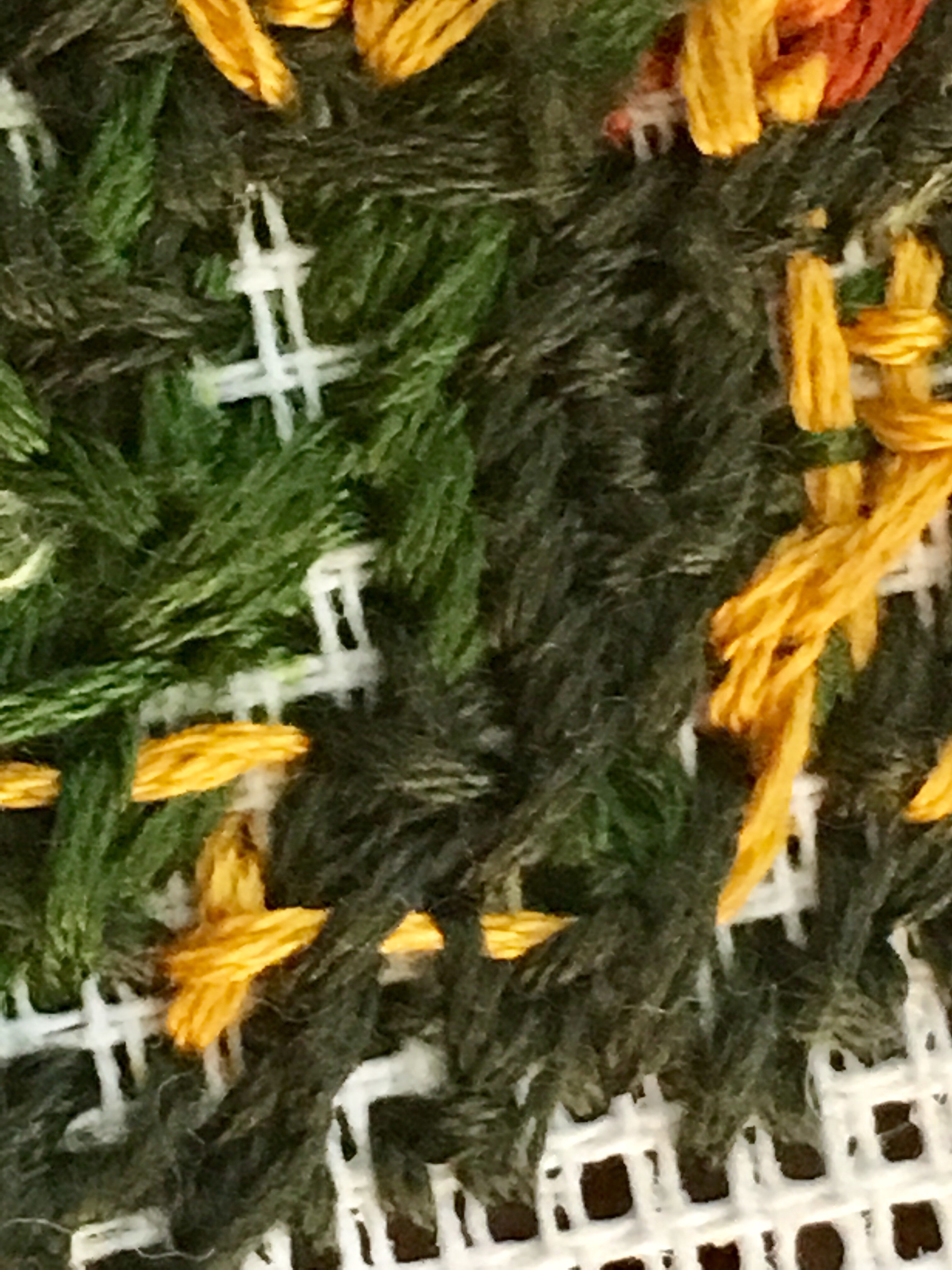 And here is entire backside of the needlepoint. You can get an idea of what it will be but cannot fully capture the details. Much like as later in life when we look back and remember all the things God has done in our lives and brought us through.