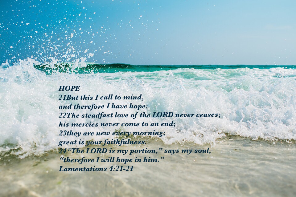 Lamentations 3:21-24 tells us our hope is based on God’s unceasing steadfast love and His endless mercies as well as recognizing our portion or inheritance is the LORD Himself. It does not mention our circumstances, our wealth or power or even what good we do. It is all based on God and His character.
